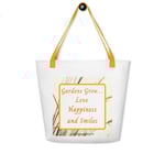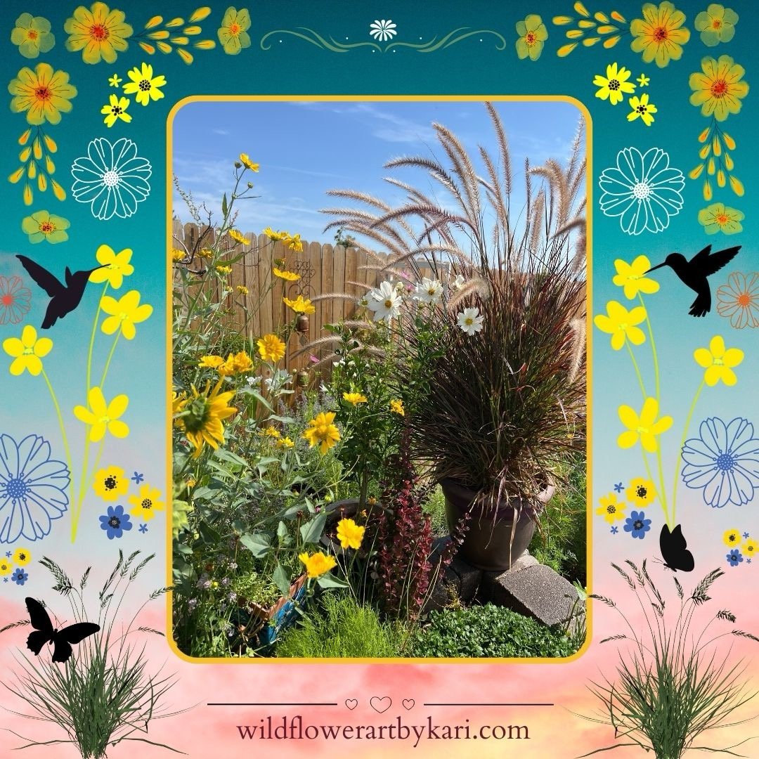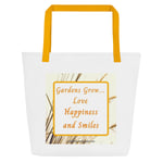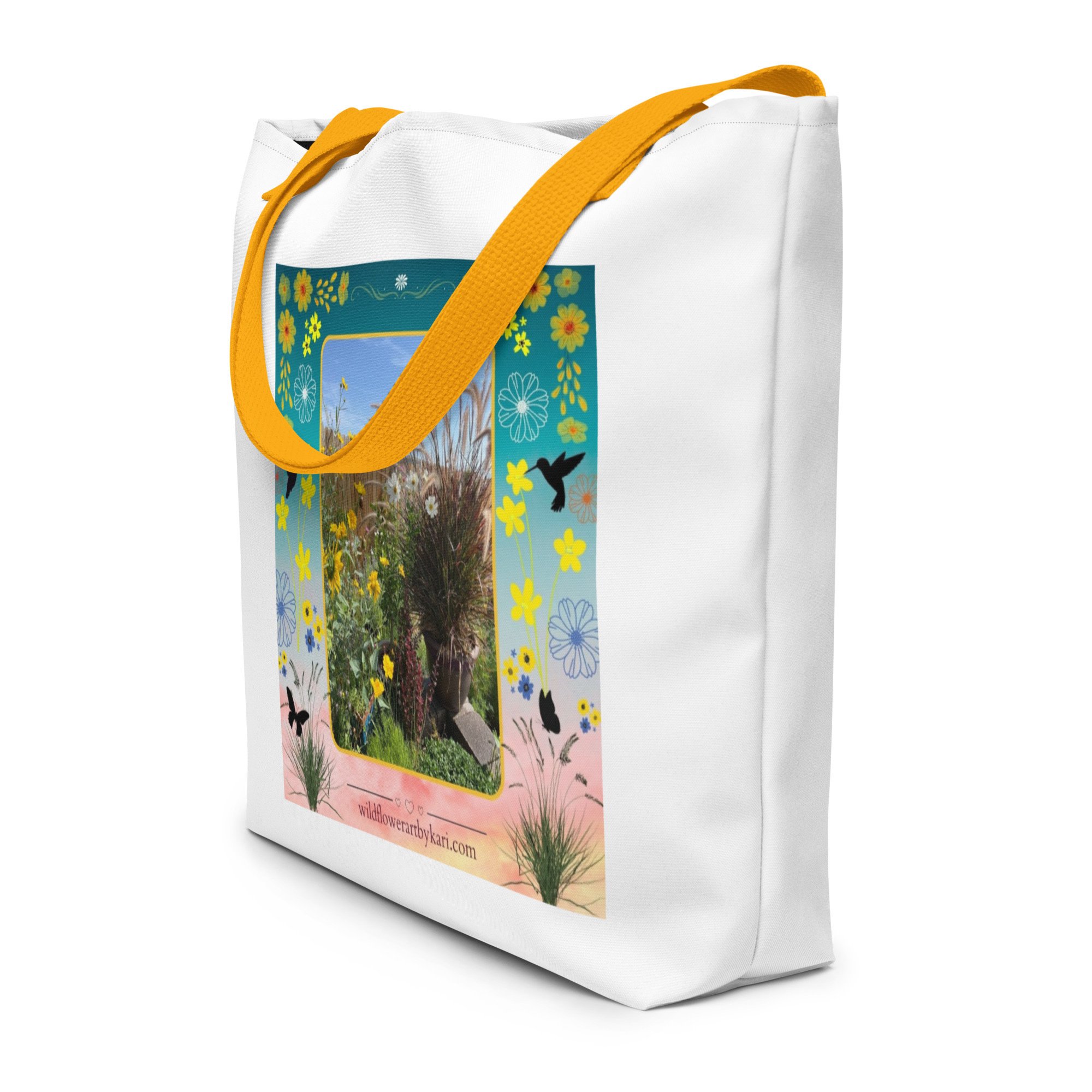 Carry this cheerful "Summer Garden" tote bag with you wherever you go. On the front side of the bag, admire the beautiful summer garden with Coreopsis, Cosmos, and Purple Fountain Grass. This picture was taken of my garden during the summer of 2024. On the opposite side of the bag, become uplifted by the pleasant garden statement.